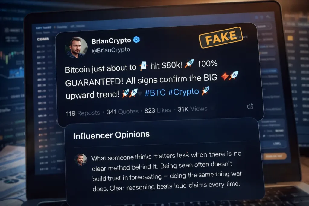 What someone thinks matters less when there is no clear method behind it. Being seen often doesn’t build trust in forecasting – doing the same thing well does. Clear reasoning beats loud claims every time.